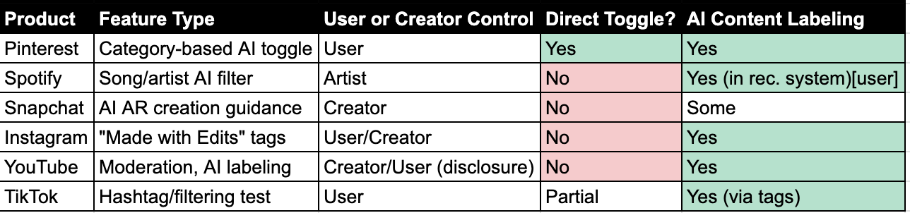 Hereâs the current state of AI slop filters across different social products: