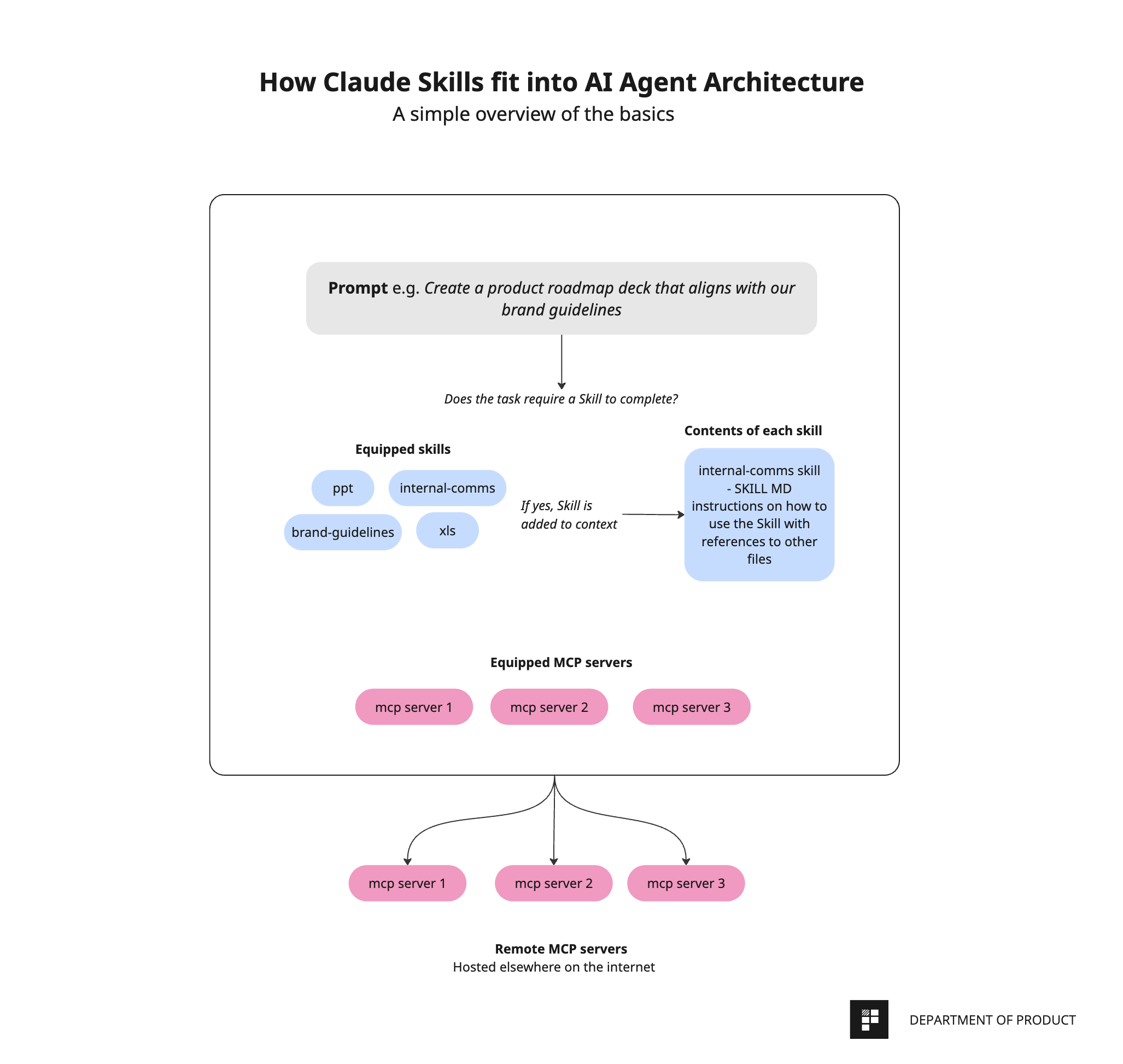 Here’s a high level snapshot of how these Skills work and fit into the bigger picture of AI Agent architecture: