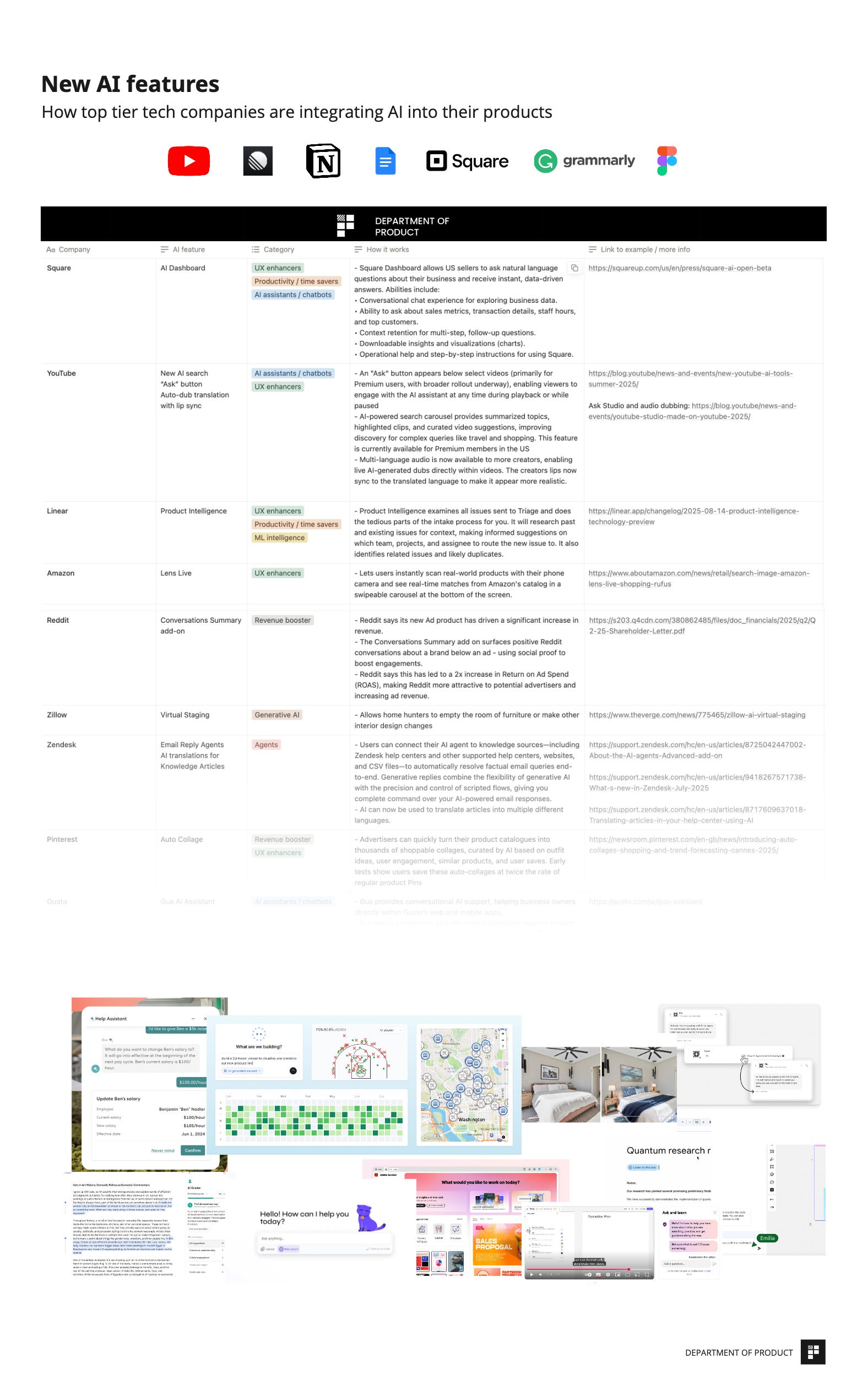 In this Deep dive, we’ll take a look at over 30+ different new AI features shipped from 25+ different product teams at some of the world’s top tech companies including YouTube, Square, Linear, Uber, Google Docs, Retool, Figma and more.