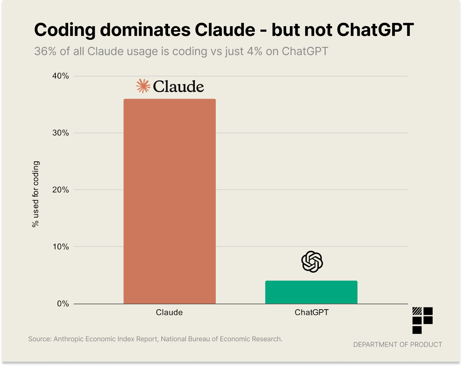 OpenAI published its own equivalent report on how people use ChatGPT. And what’s most striking is that just 4% of users of ChatGPT are using it for coding tasks.